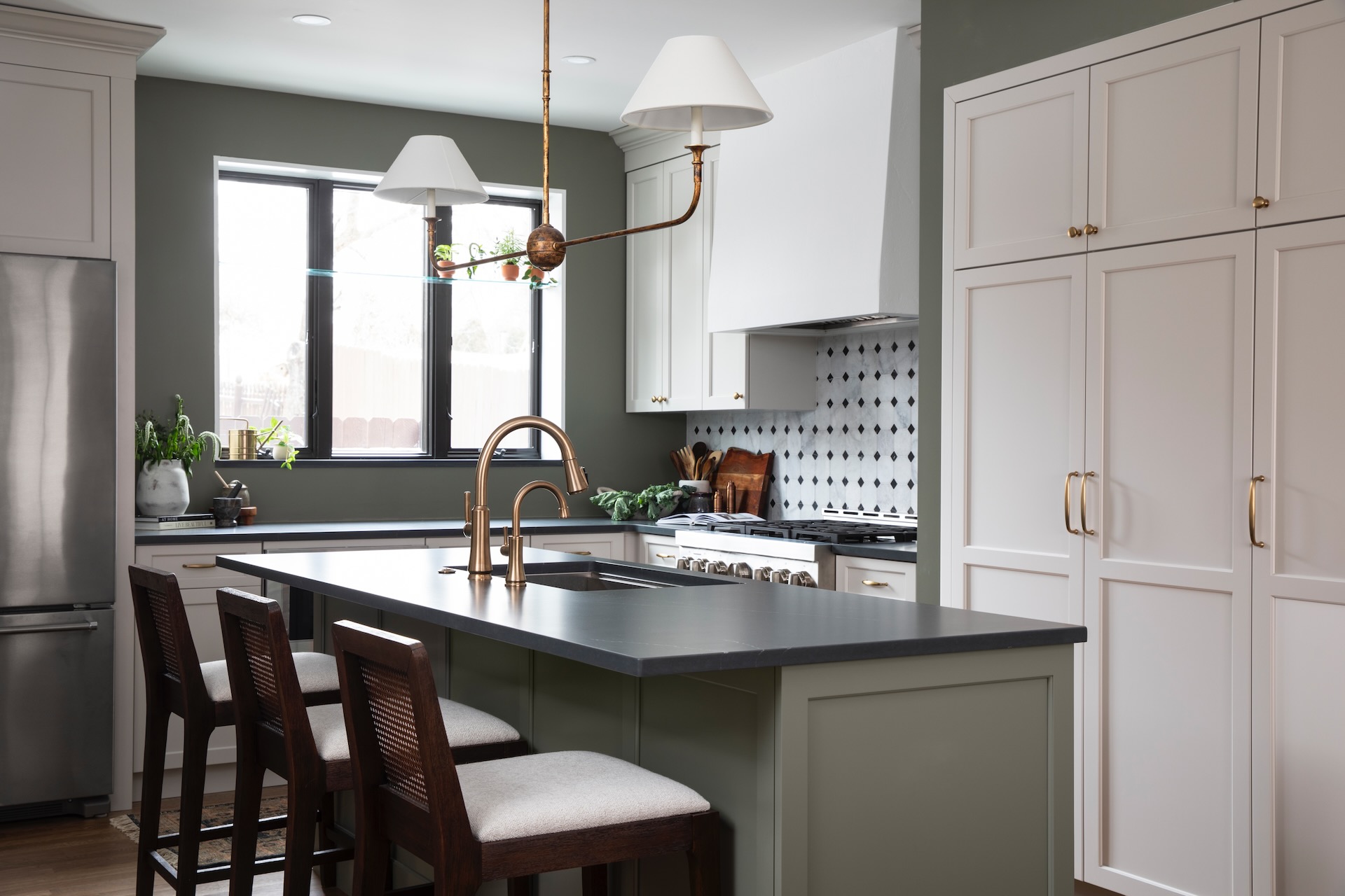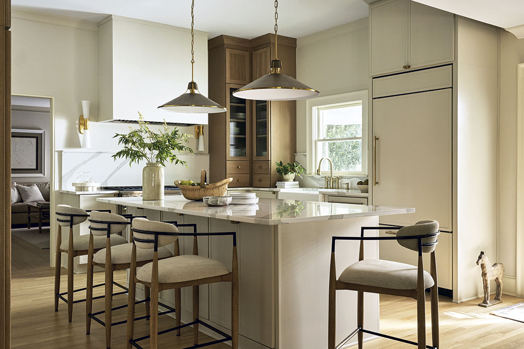 “Every decision in this kitchen was intentional,” Jacobs says. “Layering materials and finishes evoke depth, warmth and authenticity. They look like they could have been in the house for a long time. We often work in century-old homes, so we’re very conscious about ensuring a design fits into the existing architecture.”